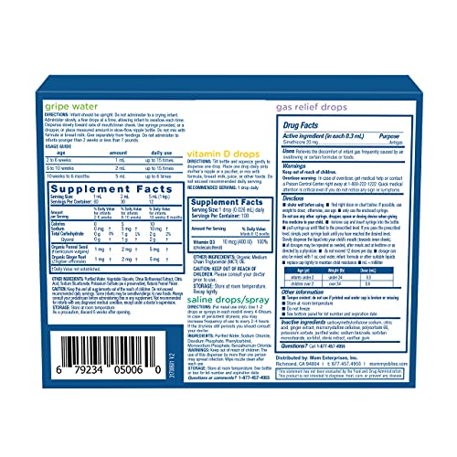 Details: Mommy’s Bliss Newborn Essentials Gift Set contains a selection of some of our best-selling items perfect as a baby shower gift for expectant moms or for everyday baby needs, including safe and trusted solutions for baby’s tummy troubles, sniffles, and everyday wellness. Our Baby Essentials include Gripe Water Original, the no. 1 selling gripe water brand in the U.S., designed for babies 2 weeks and older, is gentle, safe, and effective with organic ginger and fennel extracts that ease your baby’s stomach discomfort associated with gas, colic, hiccups, teething, & general fussiness. Our top-selling Organic Baby Vitamin D Drops with 400IU of vitamin D3 per serving as recommended by the American Academy of Pediatrics to promote healthy growth and bone development – and newer research shows D3 supports immunity. Fast-acting Baby Gas Relief Drops with simethicone, a pediatrician recommended solution for relieving gas quickly in newborns and older, with natural ginger flavor your baby will love – safe to use after every feeding when used as directed. Non-medicated, hypoallergenic Saline Drops/Spray for newborn nasal relief is a gentle and effective solution to clear mucus, clean, moisturize, and soothe delicate nasal passages, with dual action bottle for easy administration, and no burning or stinging. Mommy’s Bliss helps ease baby’s discomfort and brings back smiles. From gripe water to help calm colic or tummy troubles, to organic baby cough syrup, baby probiotic drops, or baby vitamins, its our goal to help you find your parenting bliss.